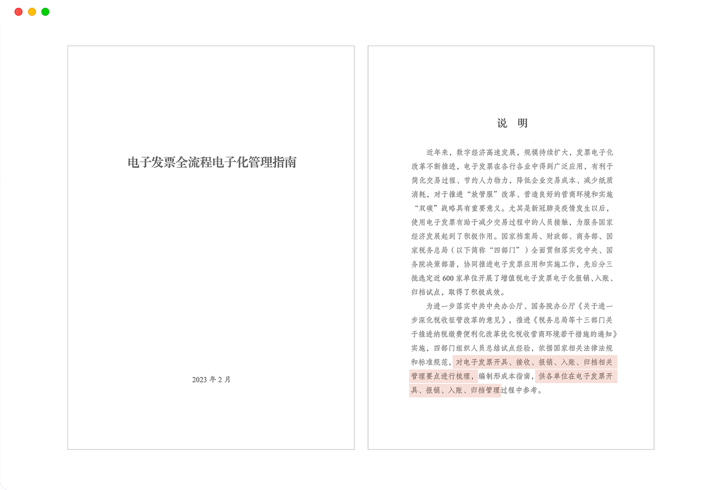 本指南梳理汇总了电子发票开具、接收、报销、入账、归档及档案管理等方法,为电子发票电子化应用提供重要参考。