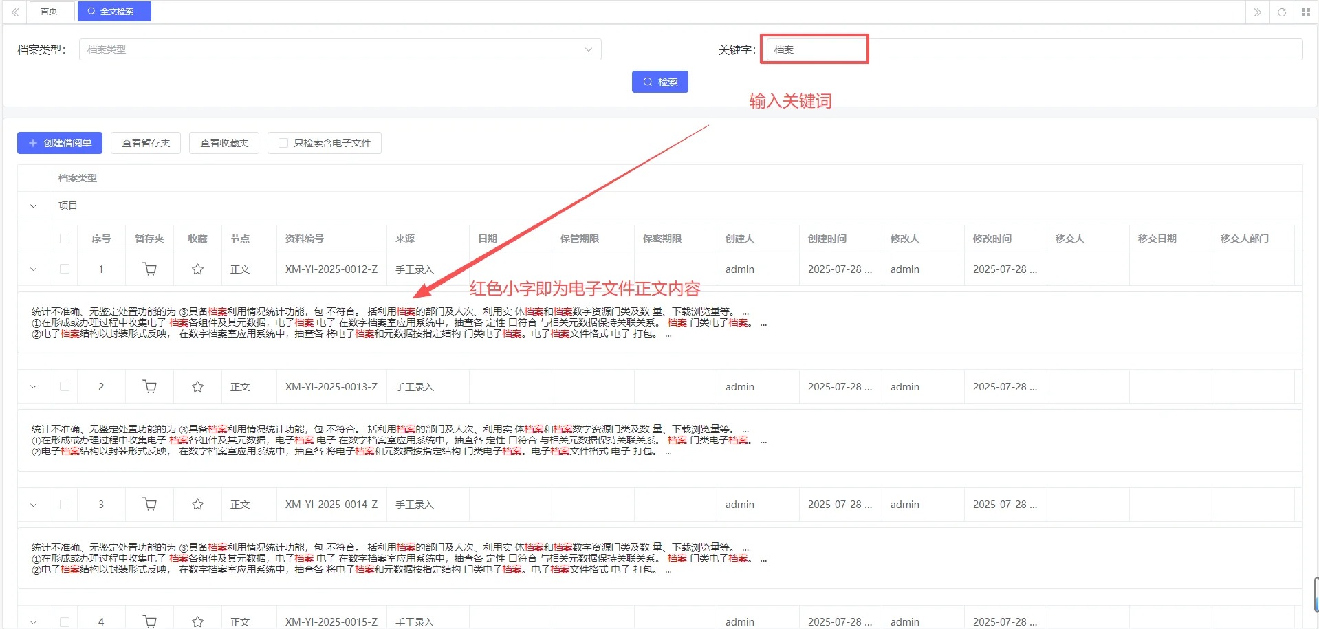 支持多种方式对档案进行检索,检索到的档案也可以进行借阅