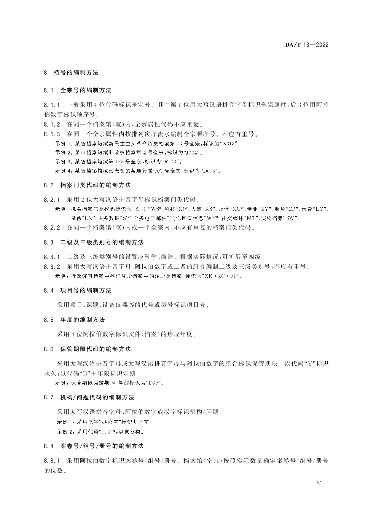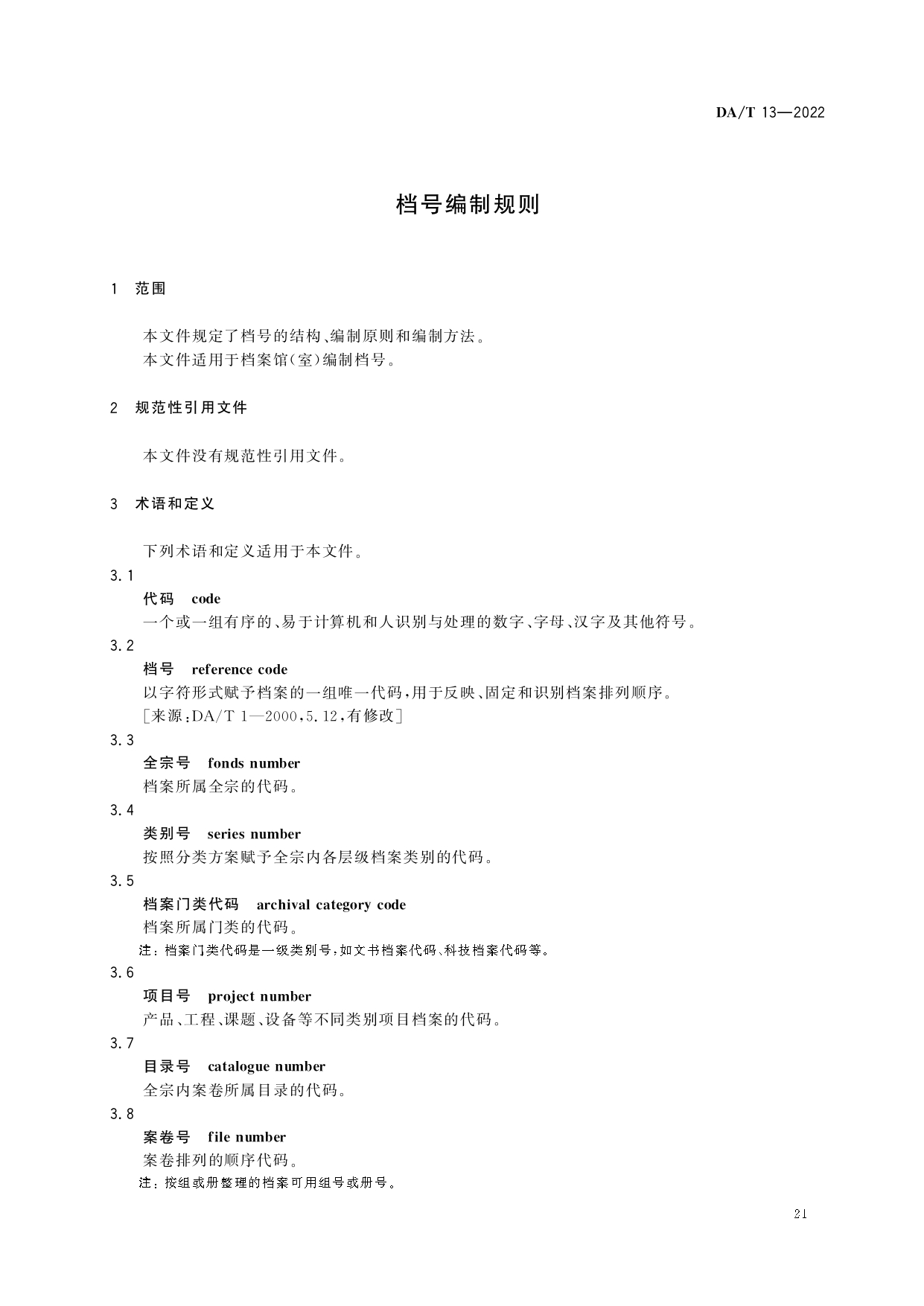 新增规范性引用文件、适用性原则、档案门类代码定义