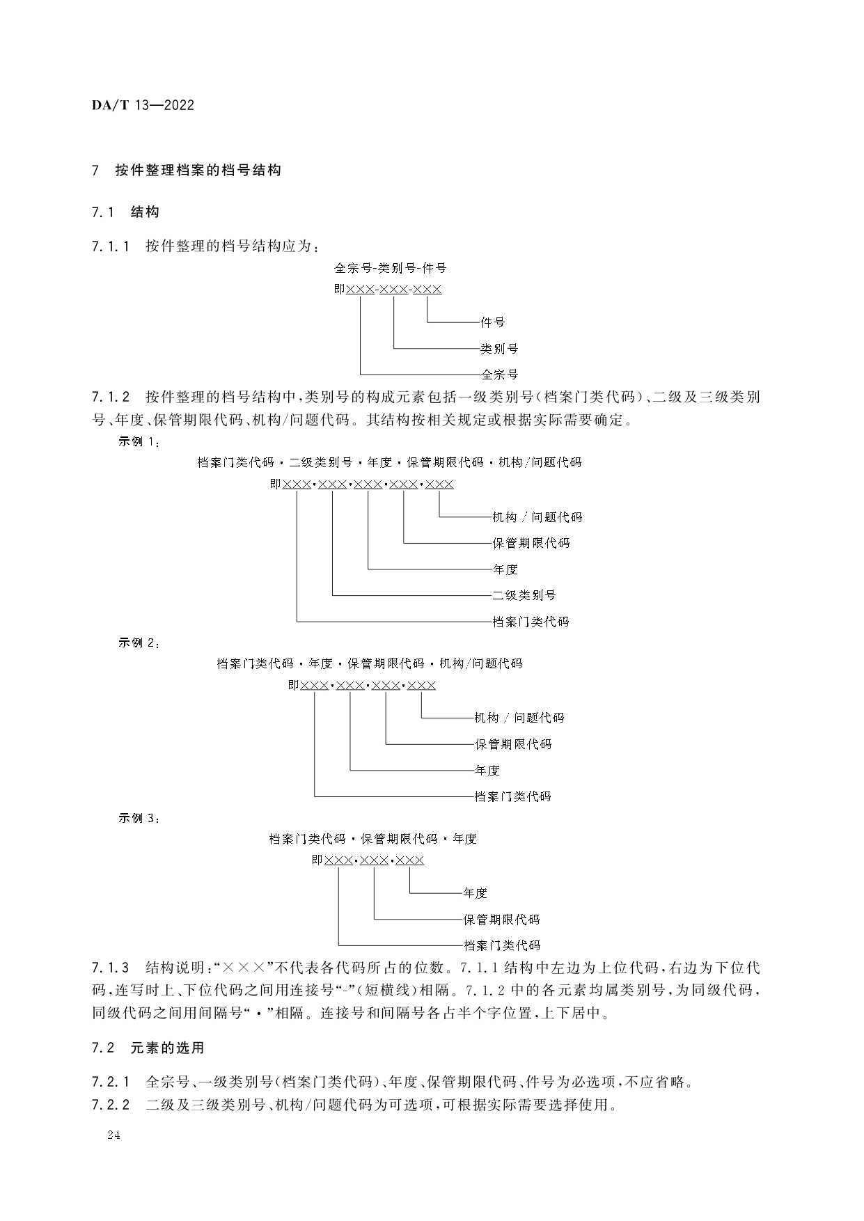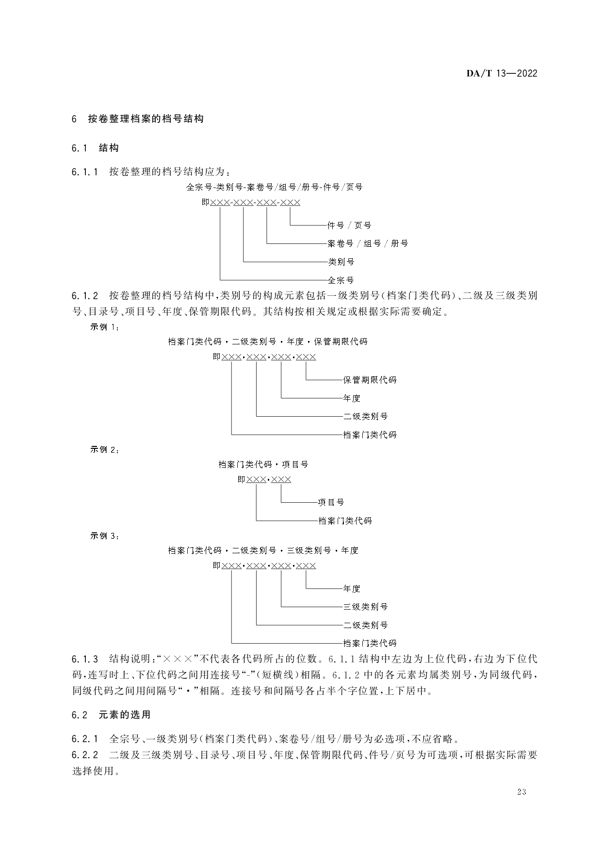 类别号组件:二级 / 三级类别号、项目号、目录号、年度、保管期限代码、机构 / 问题代码